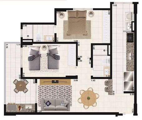 Opção de personalização com possibilidade de remoção de paredes para maior integração dos espaços (mediante disponibilidade);