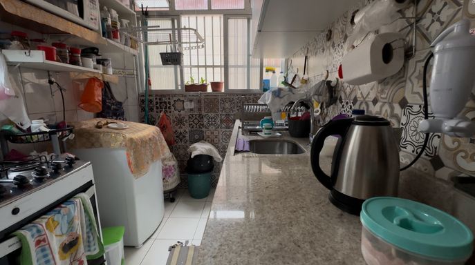 O apartamento conta com 2 dormitórios bem distribuídos, sala confortável, banheiro social e cozinha com móveis planejados, que permanecem no imóvel, trazendo economia e praticidade ao novo proprietário.