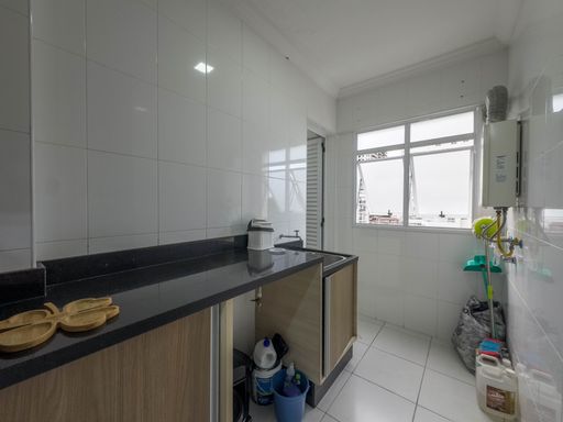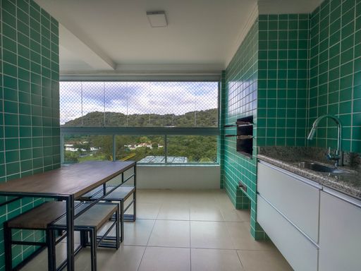 fechamento em vidro, vista do morro Xixova e parcial ao mar, cozinha
